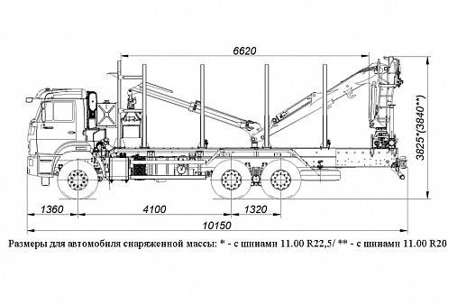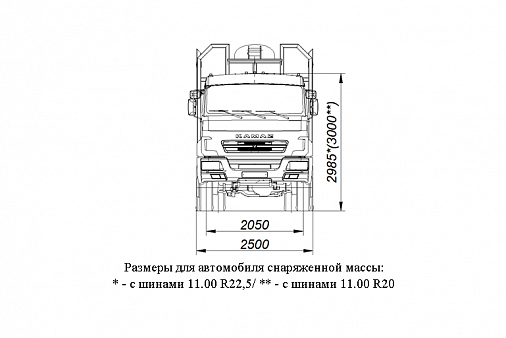 Высота, мм с шинами 11.00 R22,5 - 3825; с шинами 11.00 R20 - 3840